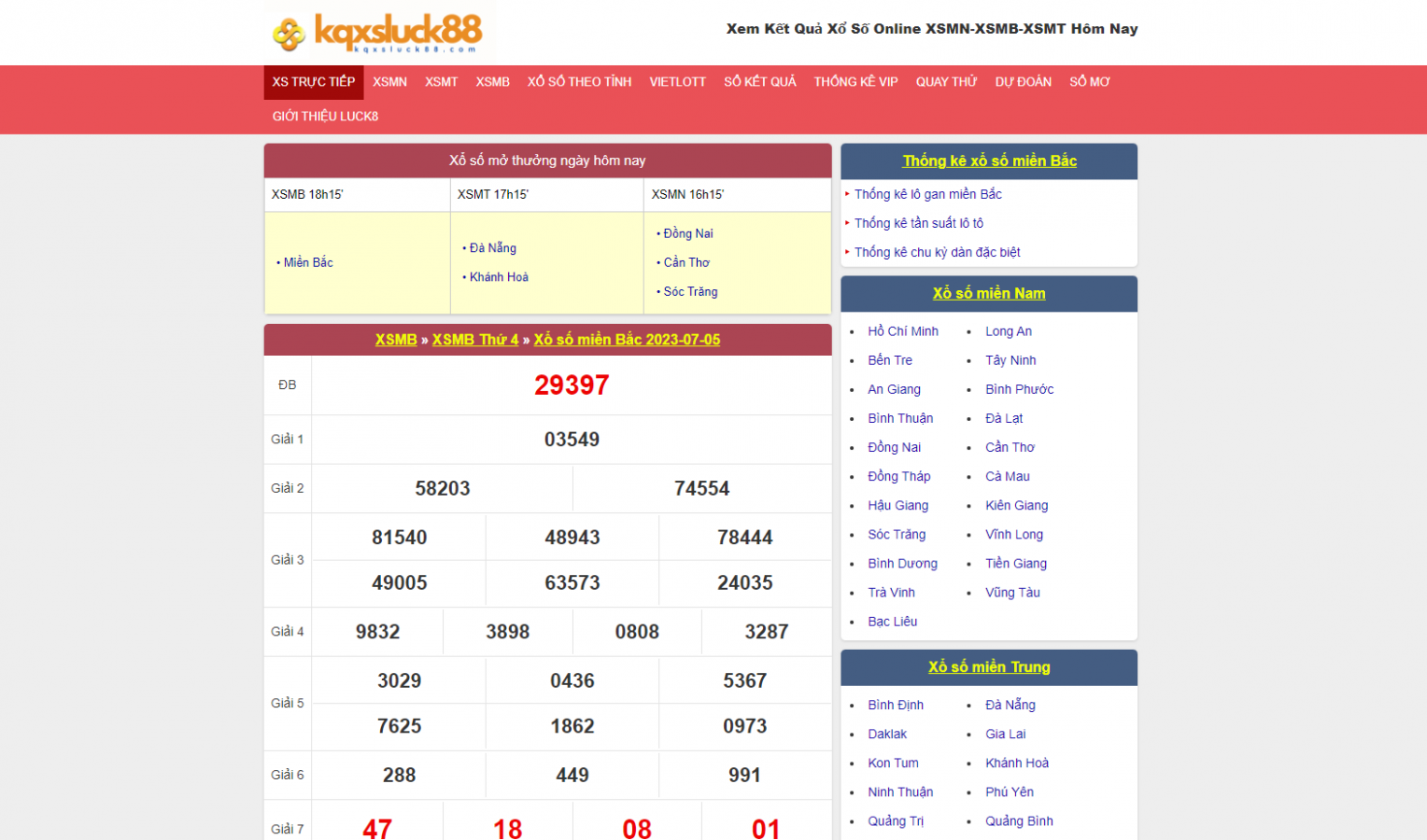 Kqxsluck88.com là một trang web cung cấp thông tin về kết quả xổ số trực tuyến hàng đầu. Kqxsluck88 cung cấp thông tin về các loại xổ số phổ biến như xổ số miền Bắc, miền Trung, miền Nam và nhiều xổ số khác nữa.